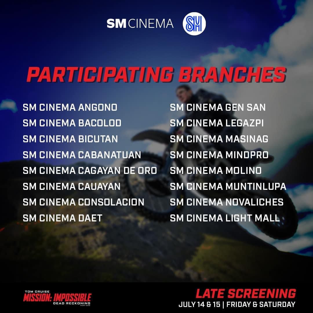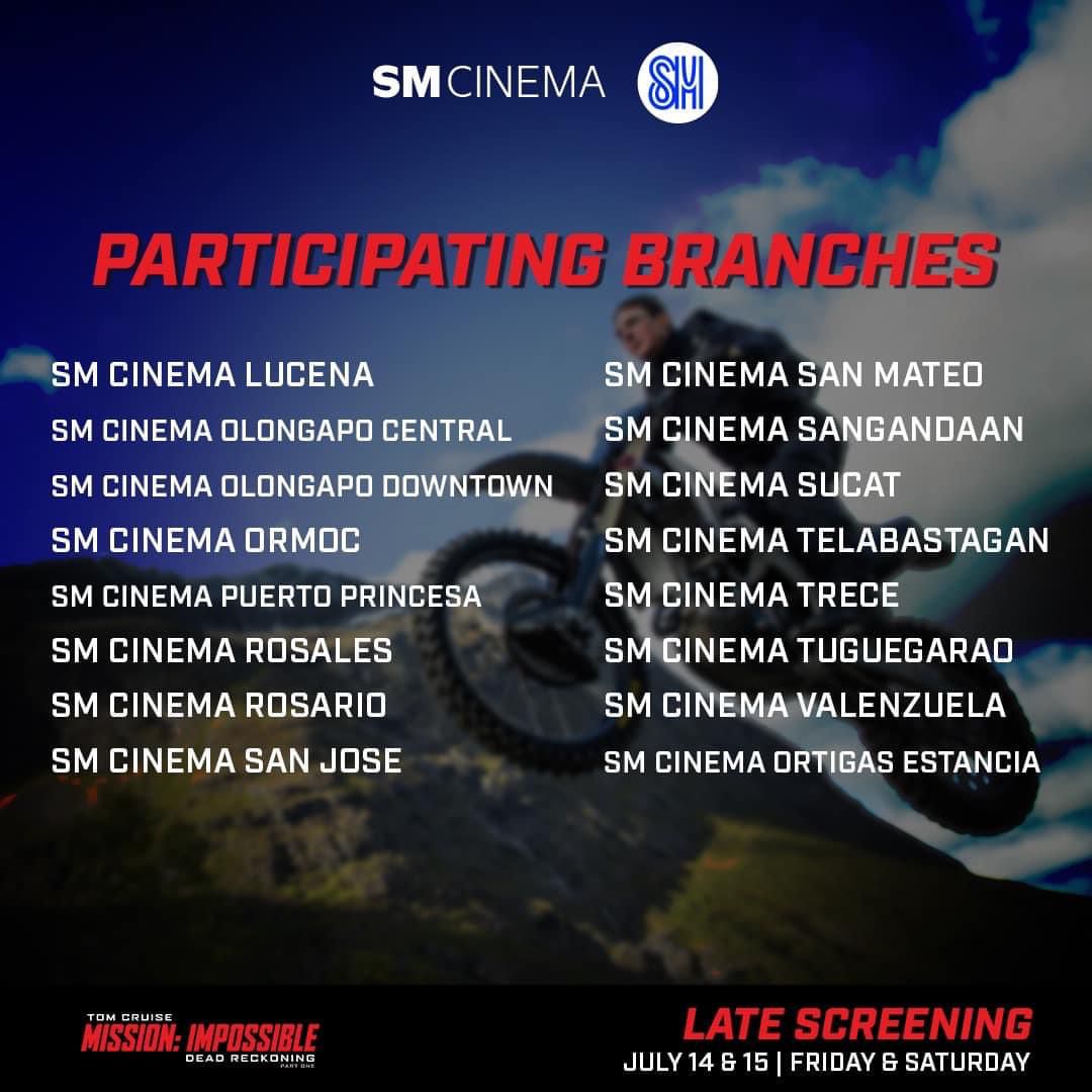 Moviegoers seeking a thrilling and exhilarating time at the movies this weekend have more options to catch the latest installment in the Mission: Impossible franchise. The Tom Cruise starrer will have late screenings on July 14, and midnight screenings on July 15 to 16.